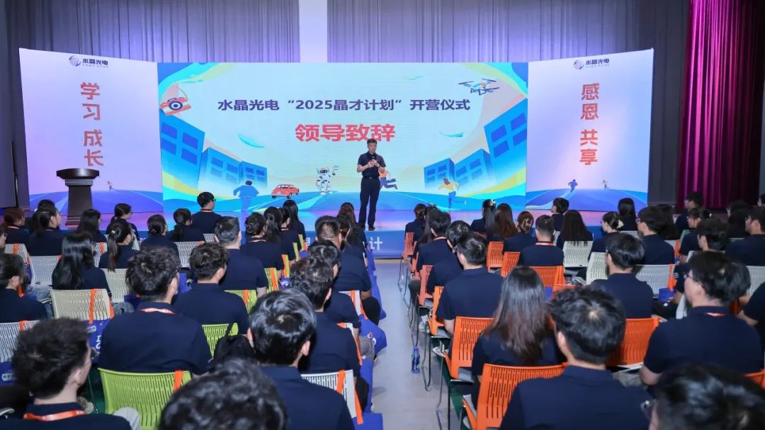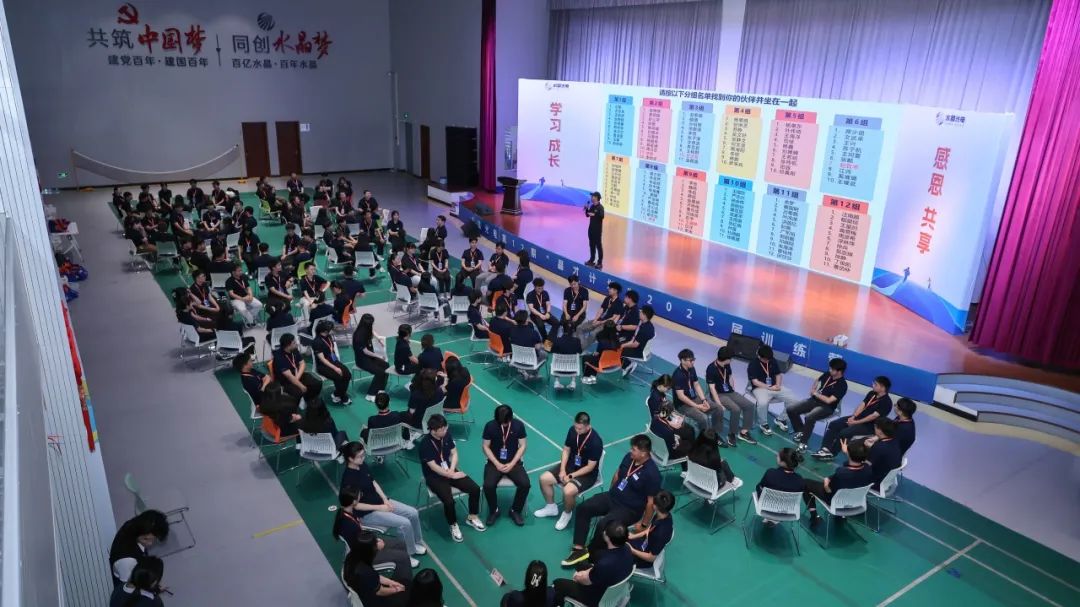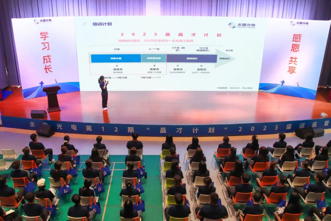 盛夏七月,热情似火。7月4日,水晶光电迎来了一批朝气蓬勃的新面孔——近140名新入职的2025届大学生齐聚一堂,以一场别开生面的开营仪式正式开启他们的"职场转身"之旅。