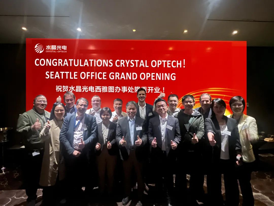 2025年4月23日,水晶光电西雅图办事处正式成立。公司董事长林敏,董事、副总经理刘风雷、李夏云,副总经理唐健等参加了开业仪式。水晶光电西雅图办事处位于贝尔维尤(Bellevue),欧弗莱克(Overlake), 西雅图是美国重要的科技创新中心之一,云集了全球知名的科技公司,被誉为"西岸硅谷"。通过西雅图办事处,水晶光电将更高效便捷地服务于大客户,进一步开拓海外市场。