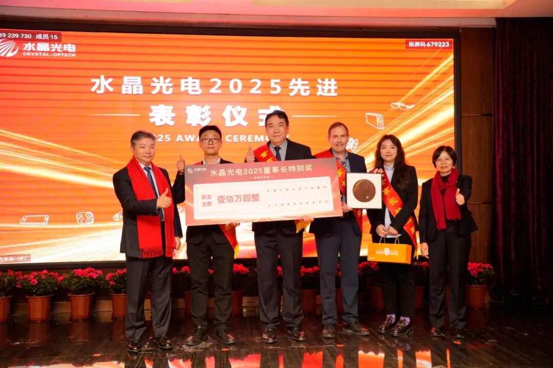 在表彰仪式之后,公司董事长李夏云发表重要讲话。李董首先对公司2025年取得的经营业绩予以充分肯定,她指出,2025年公司稳扎稳打、筑牢发展根基,充分彰显了水晶强大的业绩韧性与发展潜力。针对2026年工作部署,她明确要求将战略项目成功置于所有工作的首位,精准发力,打赢“十五五”开局第一仗,稳固业绩稳健增长态势,以结构式增长为核心引擎,驱动三条成长曲线战略加速起势。面向未来,她进一步明确公司五年战略规划与目标,强调要坚守光学初心,全面拥抱AI新时代,携手共铸水晶新辉煌。